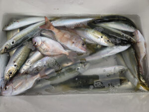 ホーム釣果情報 1月21日 釣果情報 2026/01/21 SHARE ツイート シェア はてブ LINE Pocket スポンサーリンク 釣り筏 アジ・チャリコ サビキでアジが釣れてますね。 予報よりも天気が良く、狙いのアジ・お食い初め用の鯛も釣れてよかったです! スポンサーリンク
